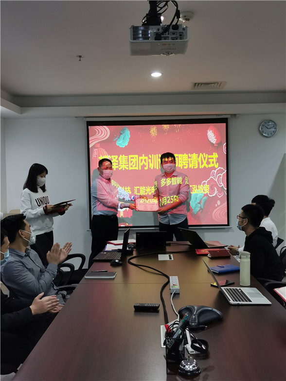第二項(xiàng)為對(duì)今年即將進(jìn)行培訓(xùn)的講師頒發(fā)聘請(qǐng)證書,講師不局限于就業(yè)年數(shù),不限于管理階級(jí),只要你具備相對(duì)應(yīng)的專業(yè)知識(shí)即可作為課堂的分享資本。本次獲得聘請(qǐng)的講師有:劉志偉、陳立群、賴路平、胡梅發(fā)、蔡怡達(dá)、劉文杰、蹇垚森、黃計(jì)鋒、張玉忠、蔡文勤、曾志成、柯永委、許力聰。由陶平江為以上同事頒發(fā)講師聘請(qǐng)證書,并合影留念。